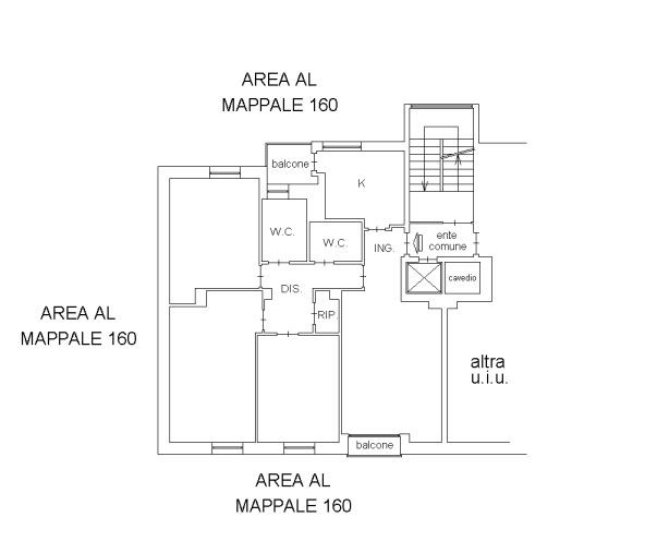 L'appartamento è composto da ingresso, soggiorno, cucina, disimpegno, tre camere da letto, doppi servizi, ripostiglio e due balconi, per una superficie totale di 120 mq.