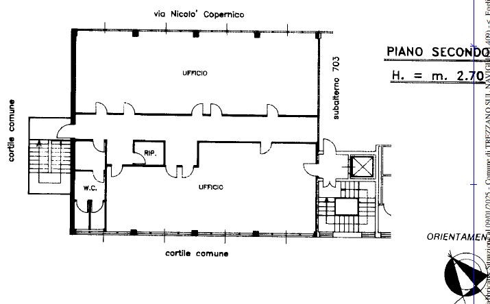 L'ufficio è composto da due locali, disimpegno, ripostiglio e servizi, per una superficie totale di 252 mq.