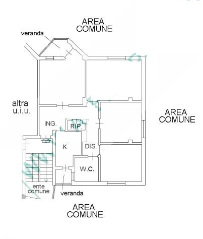 L'appartamento è composto da ingresso, soggiorno, cucinino, disimpegno, tre camere da letto, bagno, ripostiglio e due verande, per una superficie totale di 100 mq.