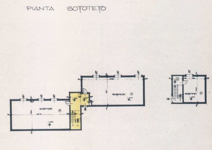 Al piano terzo sottotetto, presenti due locali accessori, disimpegno e bagno, per una superficie di 56 mq.