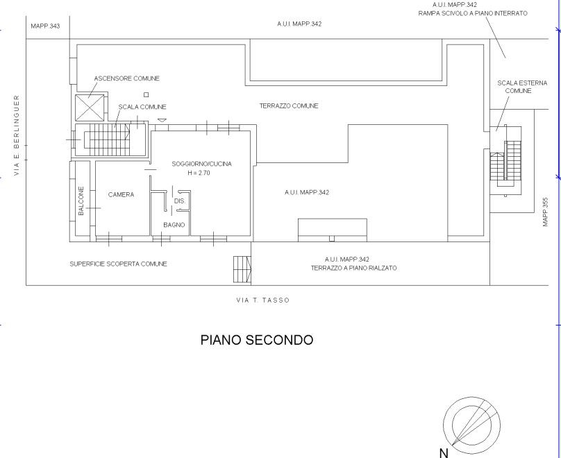 Al piano secondo presente ampia unità residenziale di 82 mq. con terrazzo di 80 mq.