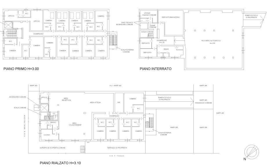 Il fabbricato, disposto su tre livelli, è composto da 17 camere con rispettivi servizi, reception, sala colazione e locali accessori , per una superficie di 993,50 mq.