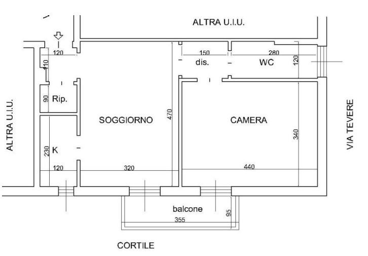 L'appartamento è composto da ingresso con ripostiglio, soggiorno con cucinino, disimpegno, una camera da letto e bagno, per una superficie totale di 47,50 mq.
