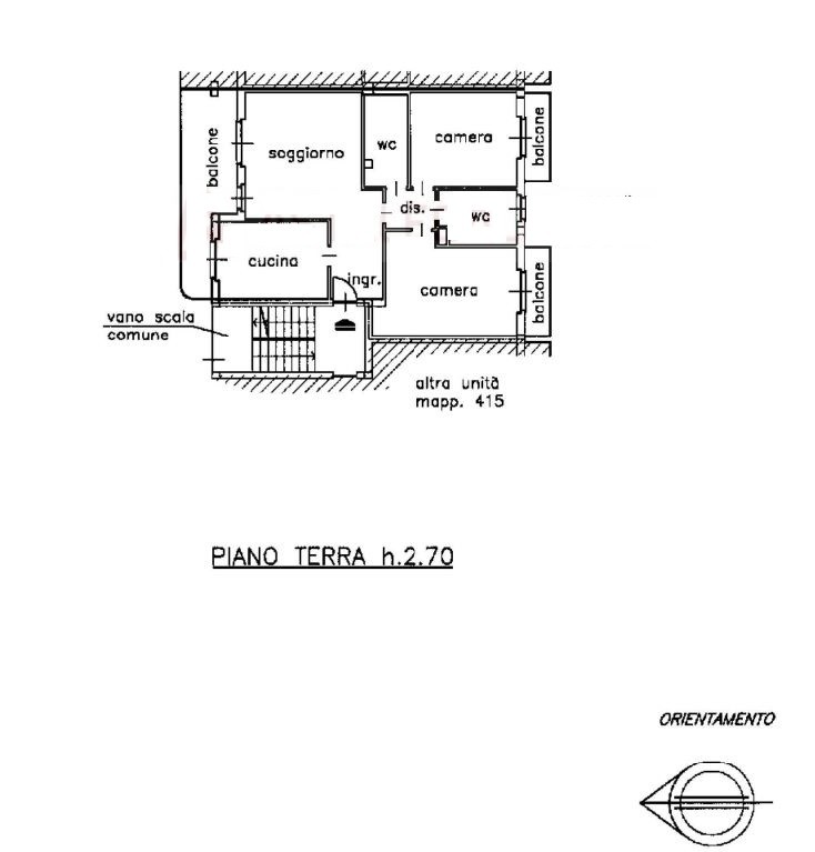 Presenti inoltre tre balconi, per una superficie complessiva di 22 mq.