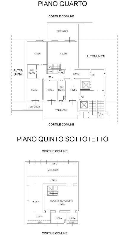 Al piano quinto presente altro locale con servizi, per una superficie di 77 mq. Oltre che veranda di 24 mq.