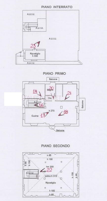 Al piano secondo sottotetto presente locale sgombero a rustico, per una superficie totale di 445 mq.