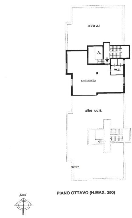 Al piano ottavo, collegato da scala interna, presente sottotetto suddiviso in tre camere da letto e bagno, per una superficie di 91 mq.