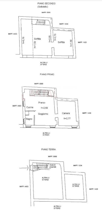 Al piano secondo sottotetto presenti due vani solaio, per una superficie di 100 mq.