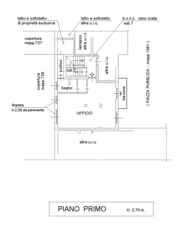 L'immobile è composto da un locale ufficio, disimpegno, bagno e balcone, per una superficie totale di 60 mq.