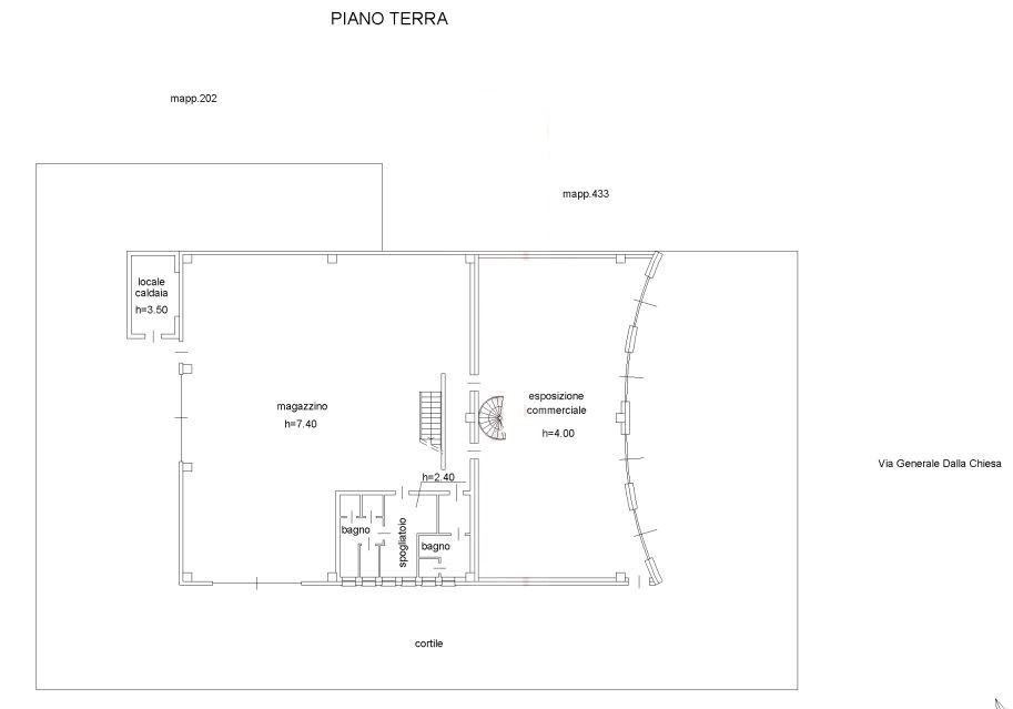 Al piano terra presente area espositiva di 160 mq. oltre che magazzino di 266 mq., blocco bagni / spogliatoi per una superficie di 41 mq.